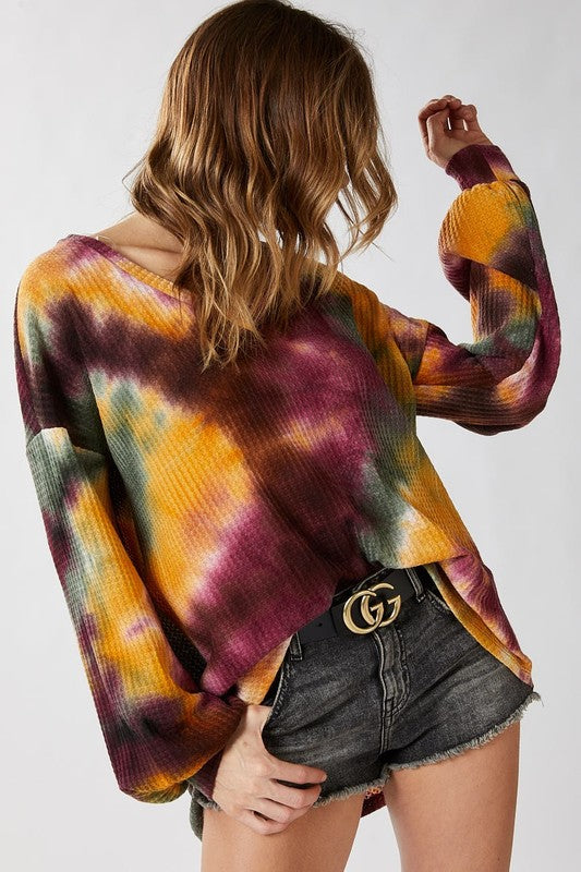 Sold outTie Dye Waffle Knit Top Plum/Olive